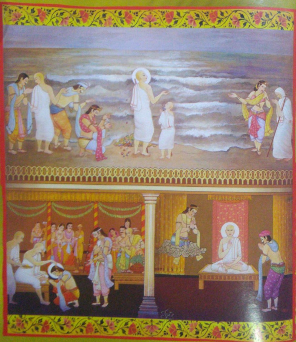 On Shrisangh’s request Dharmaghoshsuri composed Samudrastotra. Once he recited it at the seashore in Saurashtra and a miracle took place. Suddenly a huge tide brought a huge heap of jewels ashore at the feet of Dharmaghoshsuri and then receded.