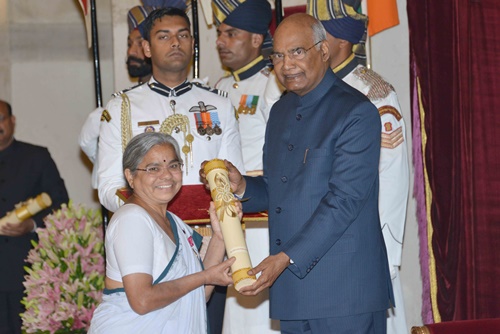 Dr. Smita Kolhe receiving the Padma Shri from the President of India, Ram Nath Kovind