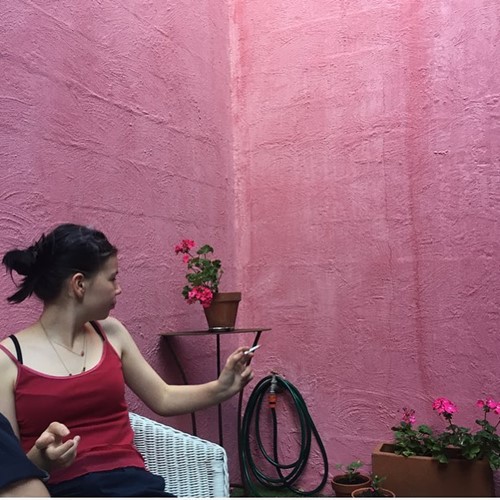 Ella Newton smoking a cigarette