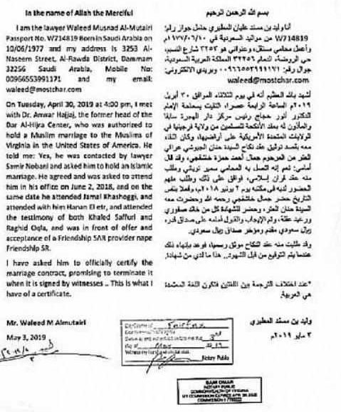 Because the Imam did not abide by what he said on the day of the marriage contract, he promised something and he and the witnesses did not fulfill it, the marriage was not proven, so now the matter is in the hands of justice and I trust the American judiciary.”