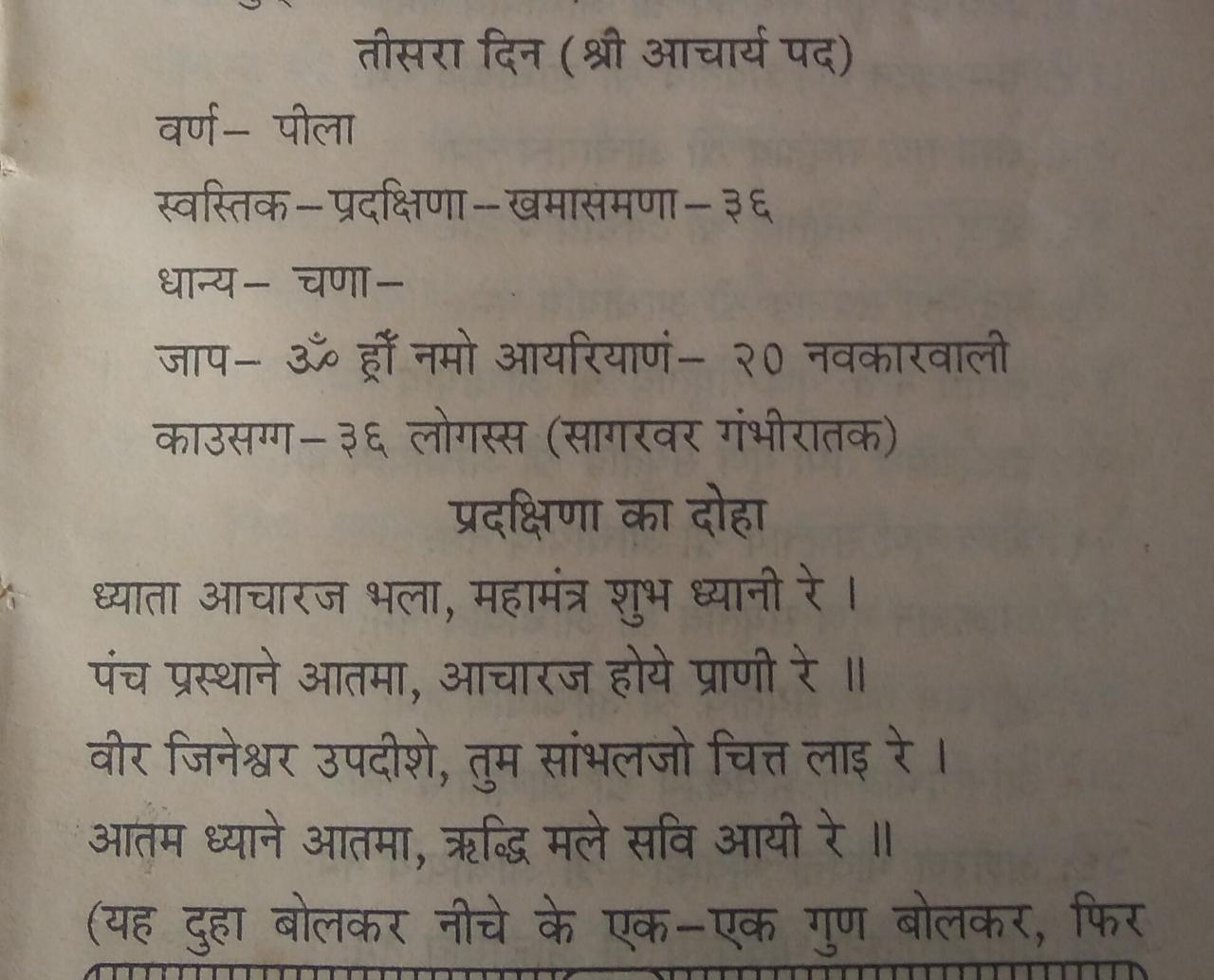 Day 3, ACHARYA PAD: Aacharya is the third post in Navpad and put on the correct side of Arihant in Siddhachakra Yantra.