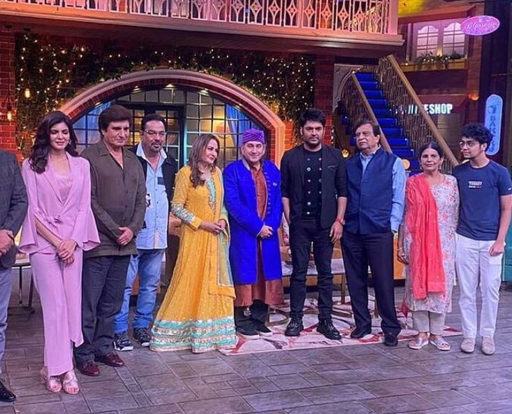 Pappu Khanna on the sets of The Kapil Sharma Show with the cast of the film Bhoot Uncle Tussi Great Ho