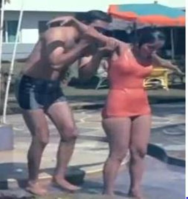 After the slipping incident, they went to take the shower and Sunil was about to enter the women’s shower. However, Sadhana told Sunil Dutt that he was entering the wrong, i.e. the women’s shower cabin. She stopped him from entering the blue door.