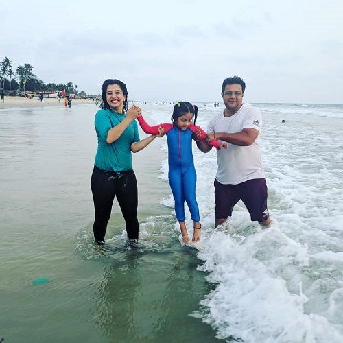 She celebrates her marriage anniversary with the Indian film director Girish T. Vasaikar on 22 September, and the couple has one daughter, Shaurya Vasaikar.